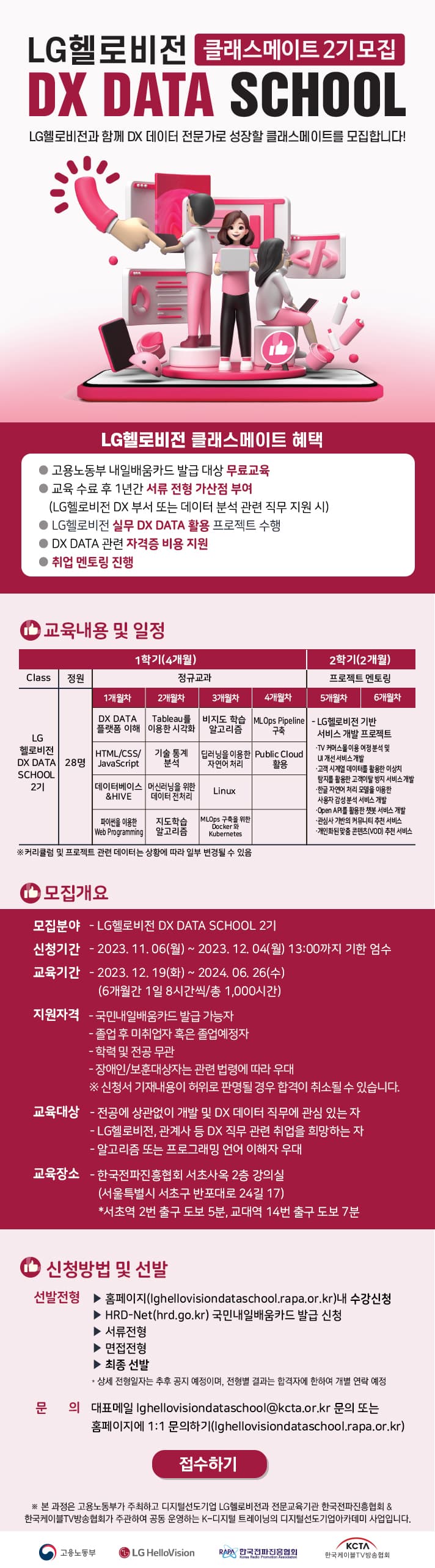 LG헬로비전과 함께 DX 데이터 전문가로 성장할 클래스메이트 2기를 모집합니다!