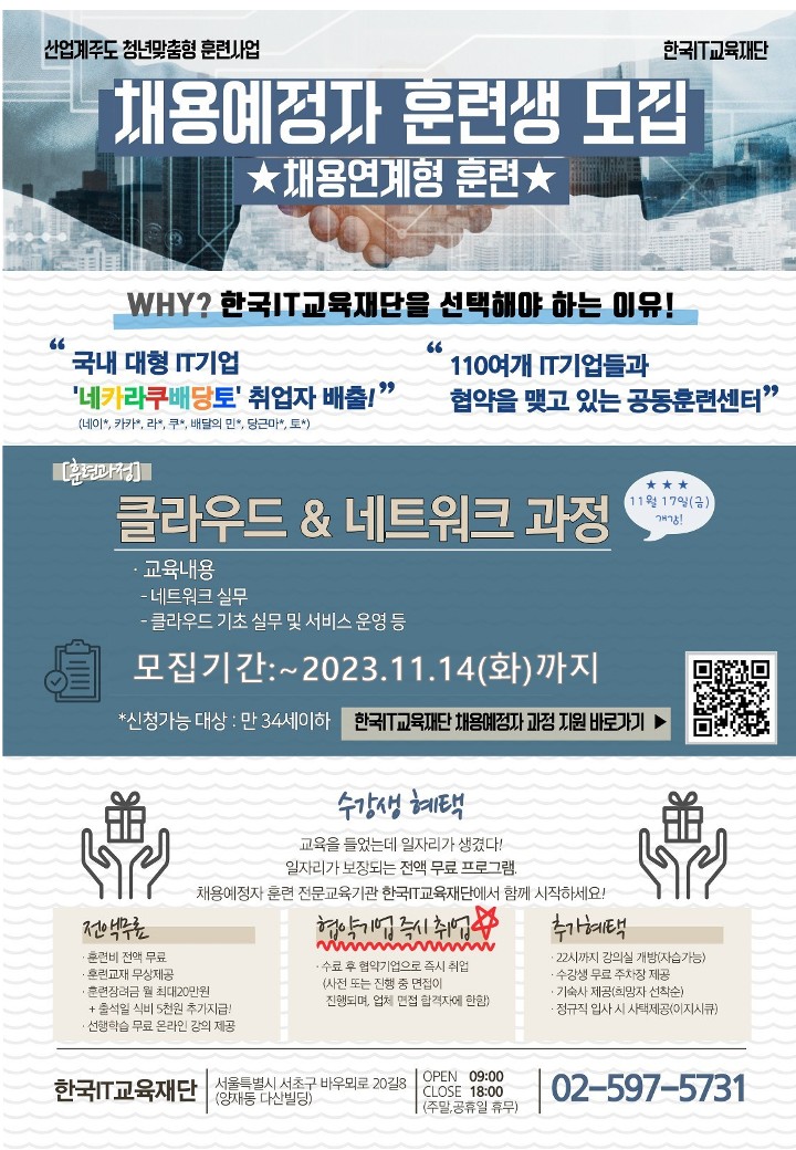 * 위 과정은 채용예정자 과정으로 신입 직무교육을 6주 진행 후 해당업체에 취업을 확정하는 내용으로 진행되며 사전 또는 진행 중 면접이 진행됩니다.