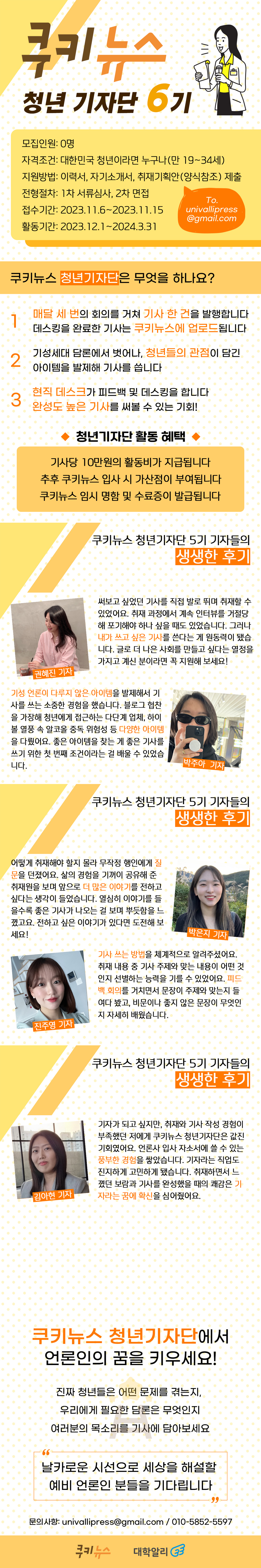 쿠키뉴스가 ‘청년기자단 6기’를 모집합니다.