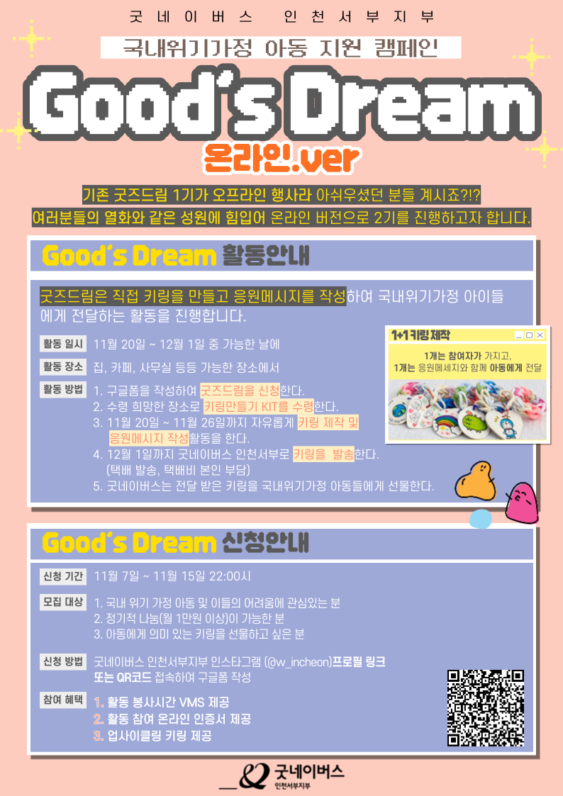 12월 1일까지 굿네이버스 인천서부로 키링을 발송한다. (택배발송. 택배비 본인 부담)