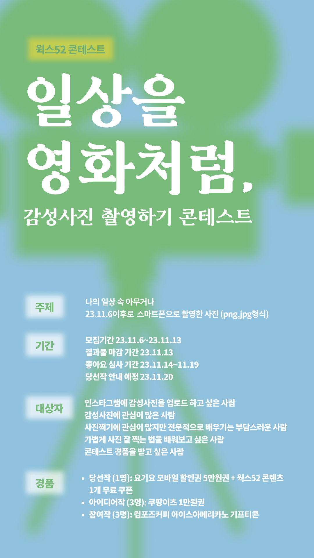 2. 윅스52에서 일상을 영화처럼, 감성사진 촬영하기 챌린지 참여
