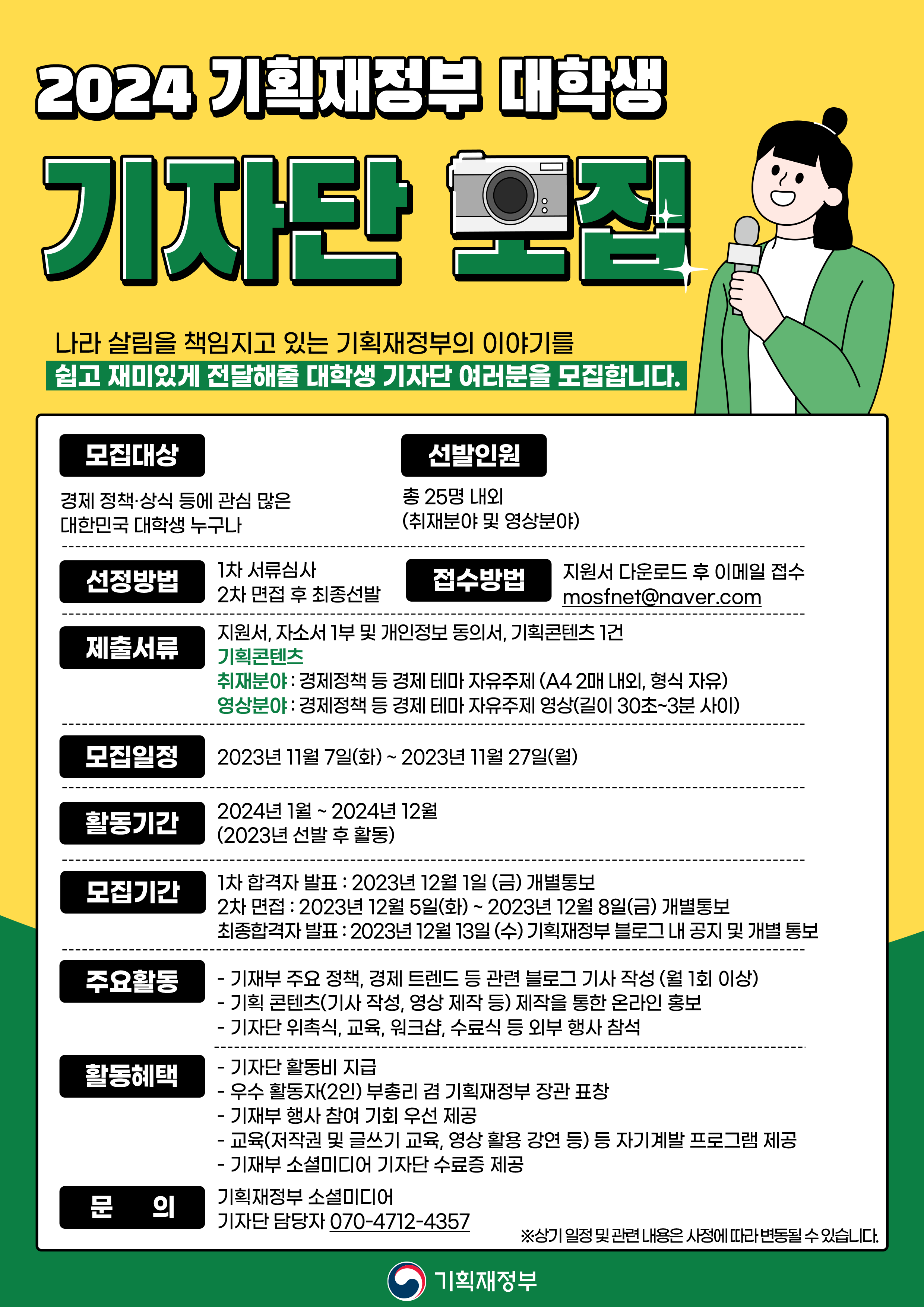 📢2024년 기획재정부 17기 대학생 기자단을 모집합니다