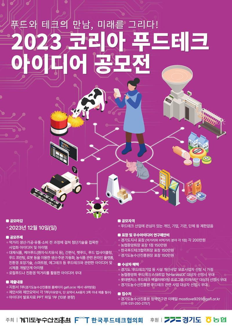 2023 코리아 푸드테크 아이디어 공모전을 아래와 같이 실시하니 많은 참여 바랍니다.