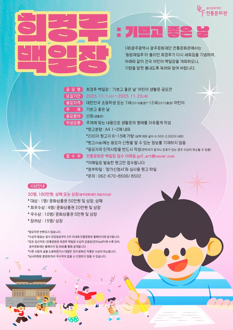 2023 희경루 백일장 '기쁘고 좋은 날' 어린이 생활문 공모전