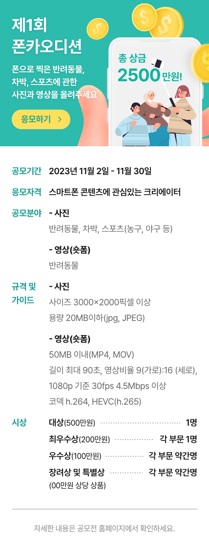 - 심사 결과 및 작품 완성도에 따라 수상인원과 수상작(예: 특별상)은 변동되거나 추가 될 수 있습니다.
