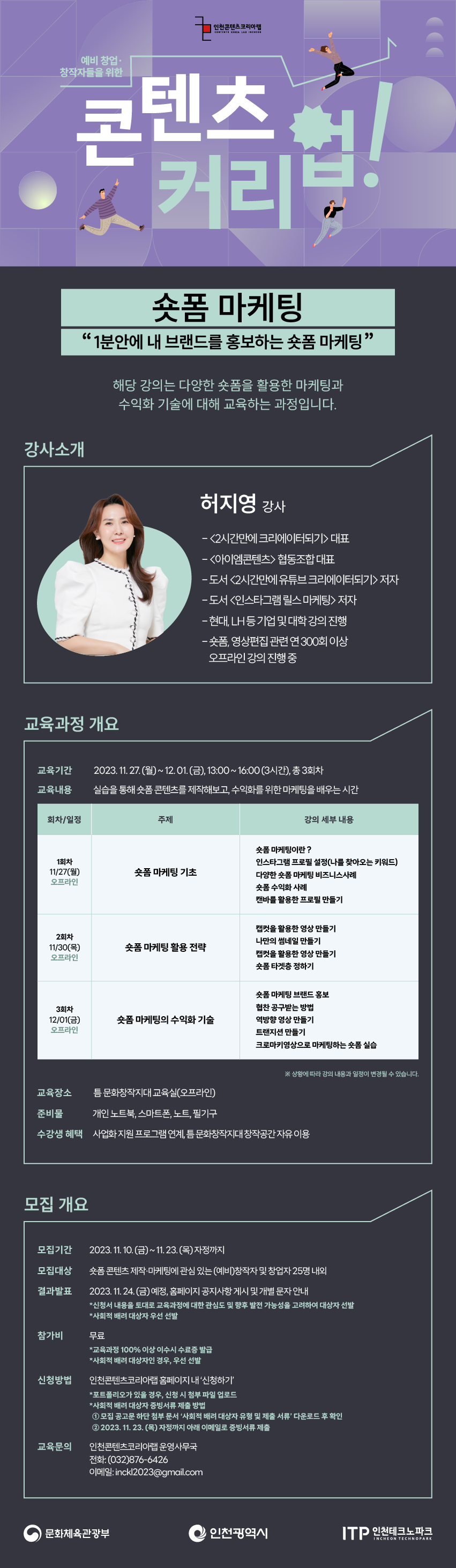 ▶ 교육문의: 인천콘텐츠코리아랩 운영사무국 032-876-6426 / inckl2023@gmail.com