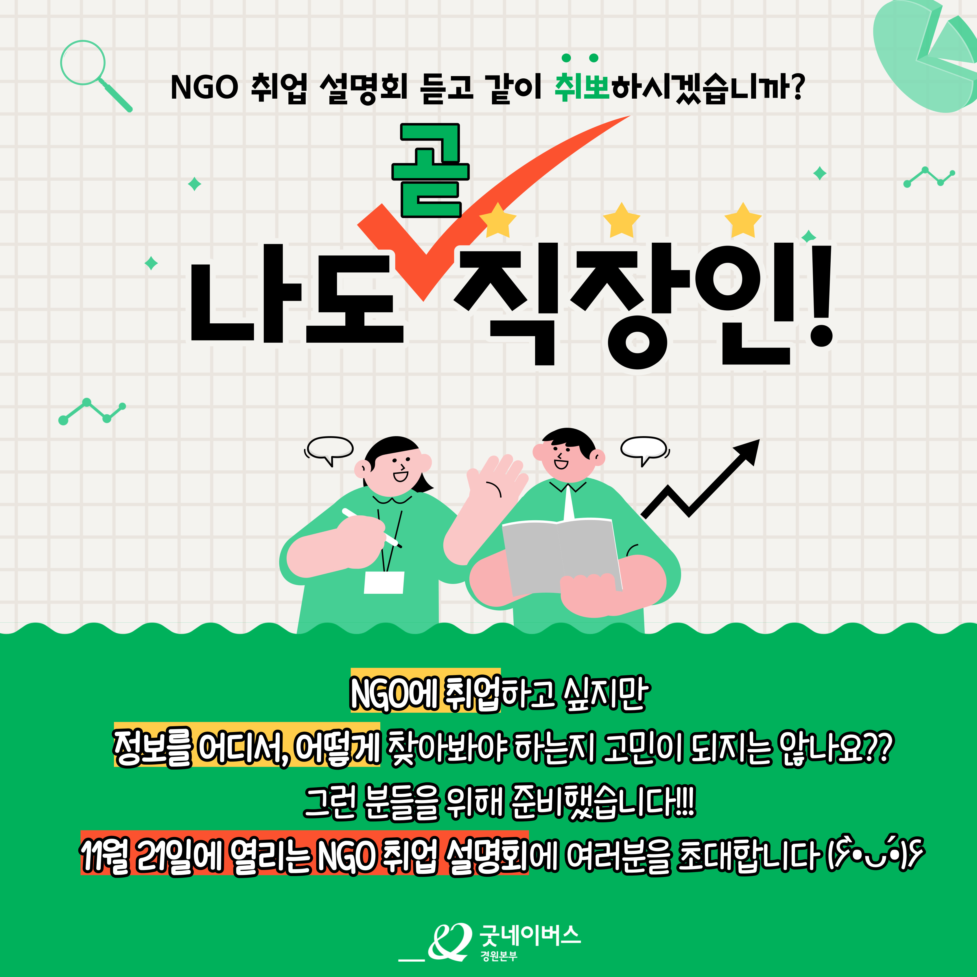 11월 21일에 열리는 NGO 취업 설명회에 여러분을 초대합니다 (۶•̀ᴗ•́)۶