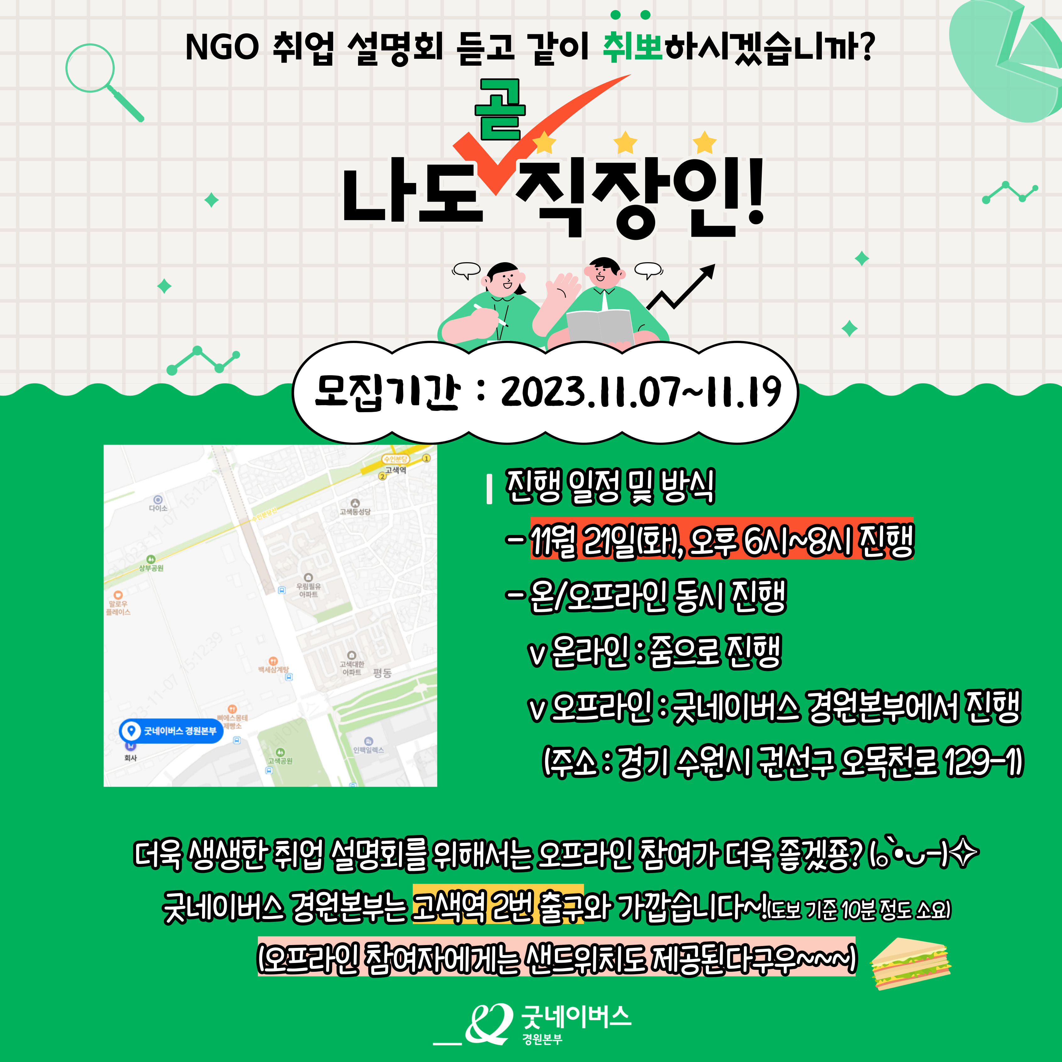 v 오프라인 : 굿네이버스 경원본부에서 진행 (주소 : 경기 수원시 권선구 오목천로 129-1)