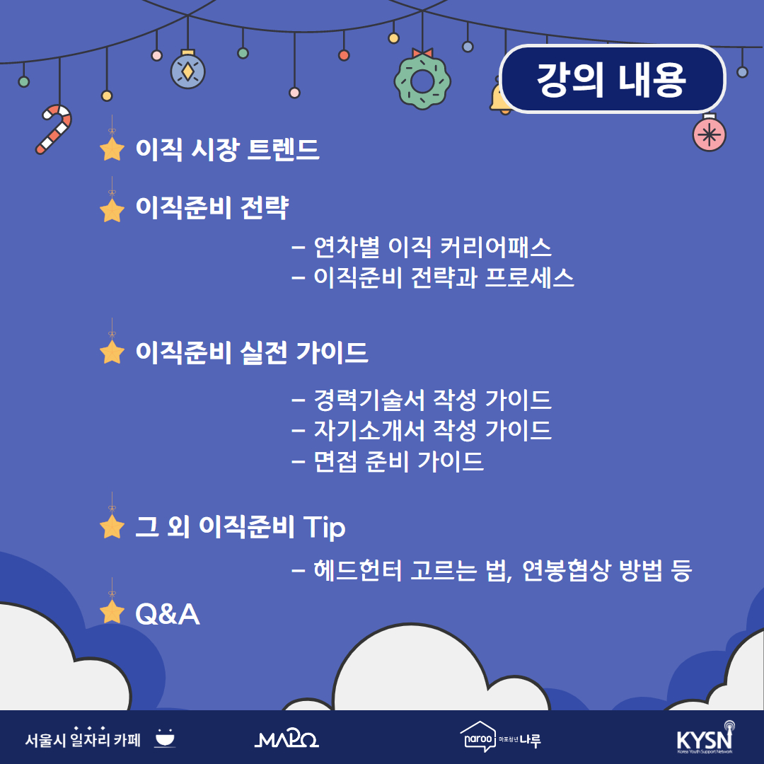 #현직자멘토링 #이직 #중고신입이직 #경력이직 #이직성공 #이직성공전략 #이직특강 #마포청년나루