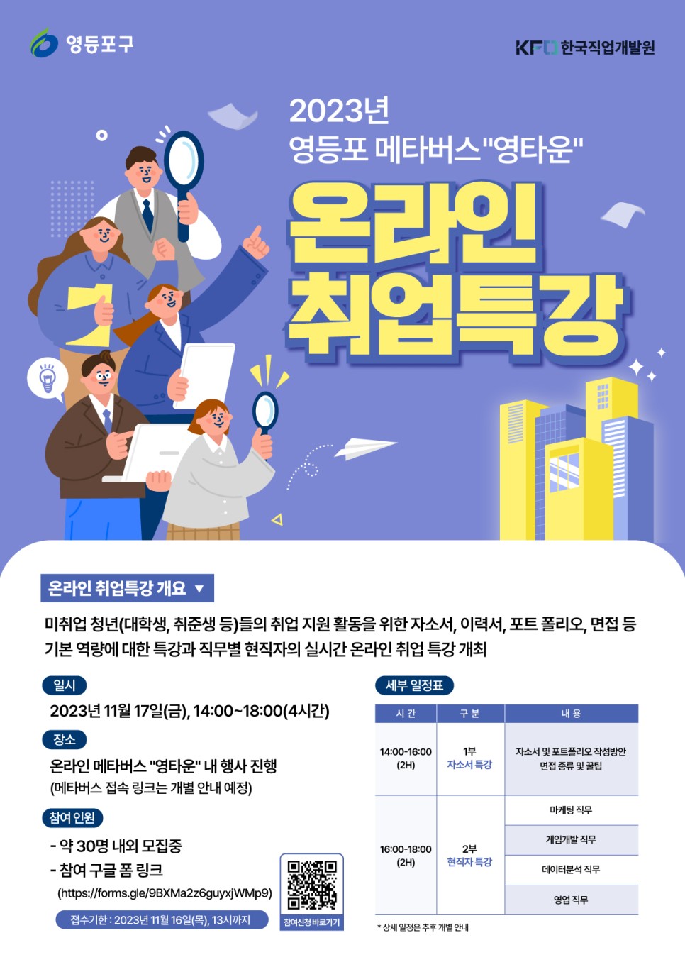 [영등포구청] 메타버스 "영타운" 온라인 직무별 현직자 취업특강 참여자 모집