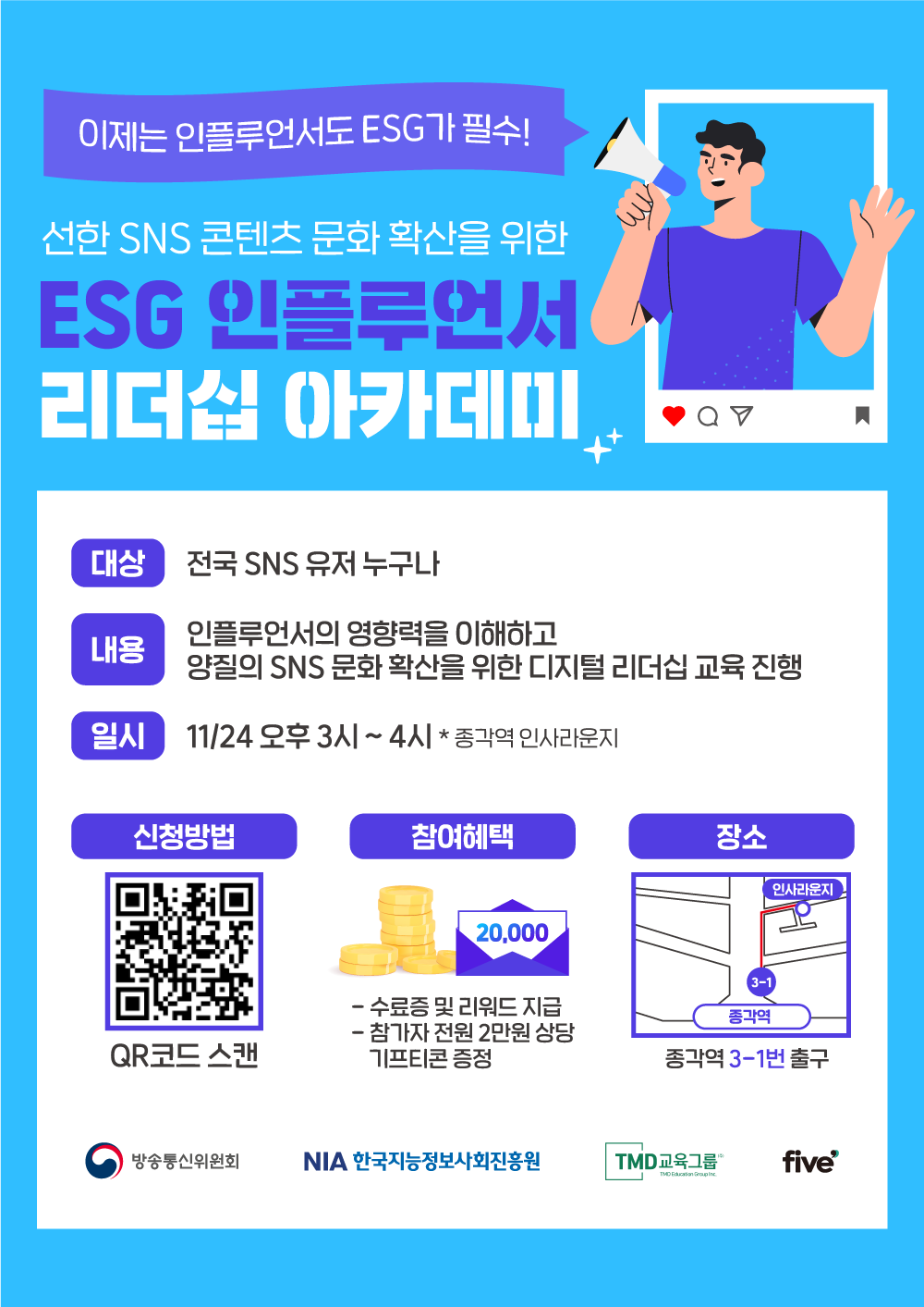 2023 ESG 인플루언서 리더십 아카데미 교육 오프라인 수강생을 모집합니다.