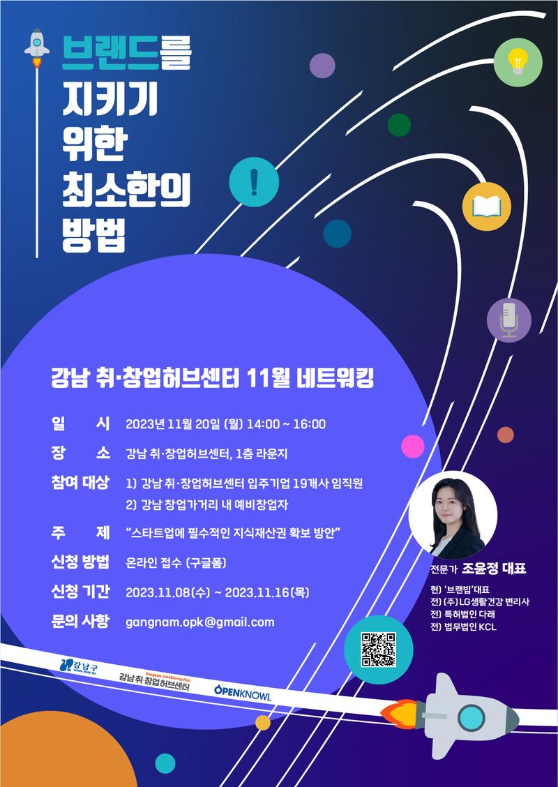 네트워킹에 참석만 하여도 차별화된 브랜드 가치를 획득할 수 있는 기회인 강남 취•창업허브센터 11월 네트워킹!