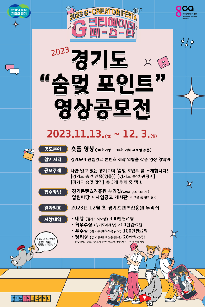 경기도의 숨겨진 매력들을 발굴하고 해당 주제에 맞는 개성 넘치는 영상을 알리고자 함