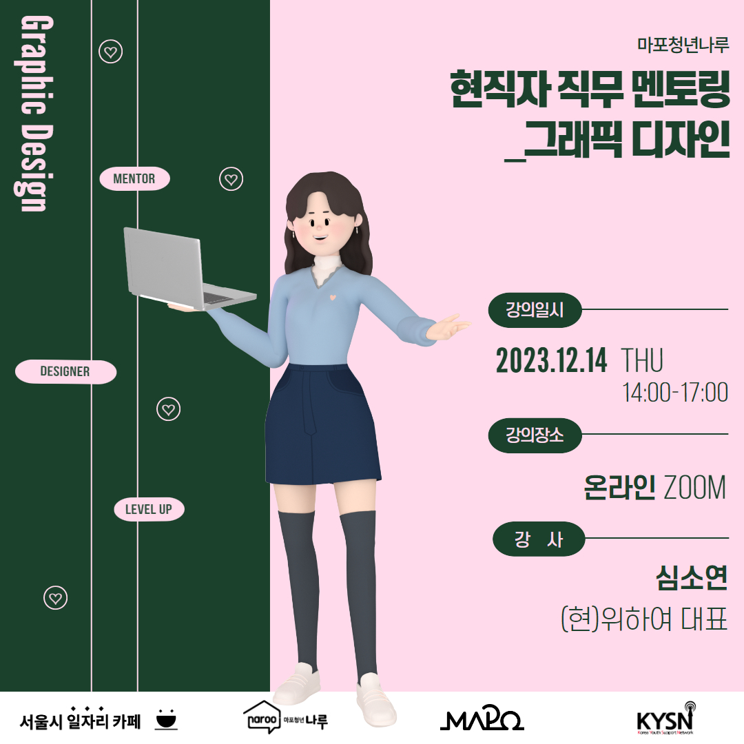 #현직자멘토링 #그래픽디자인 #디자이너 #취업준비 #마포청년나루 #직업탐색 #진로설정 #온라인강의 #취업특강