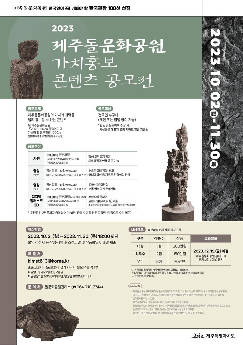 ❍ 공 모 명: 2023년 제주돌문화공원 가치홍보 콘텐츠 공모전