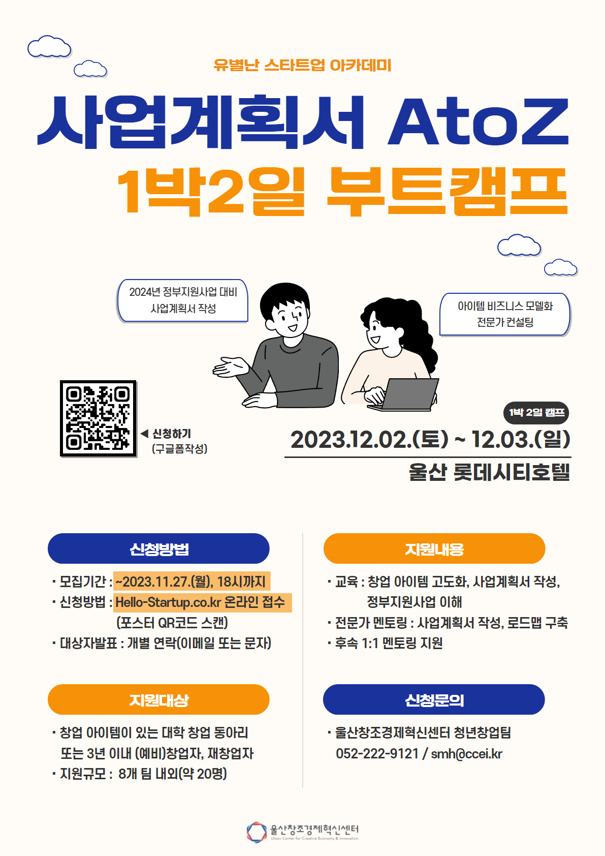 □ 문의 | 울산창조경제혁신센터 청년창업팀(052-222-9121/smh@ccei.kr)