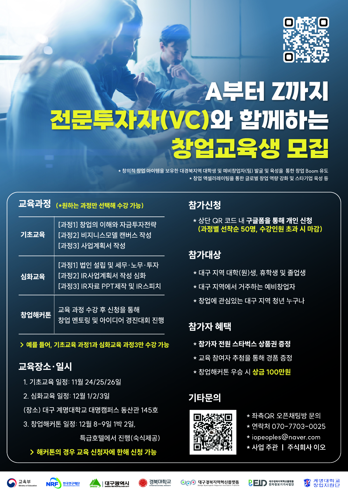 - 창업 기초교육반 : 2023년 11월 24일/25일/26일