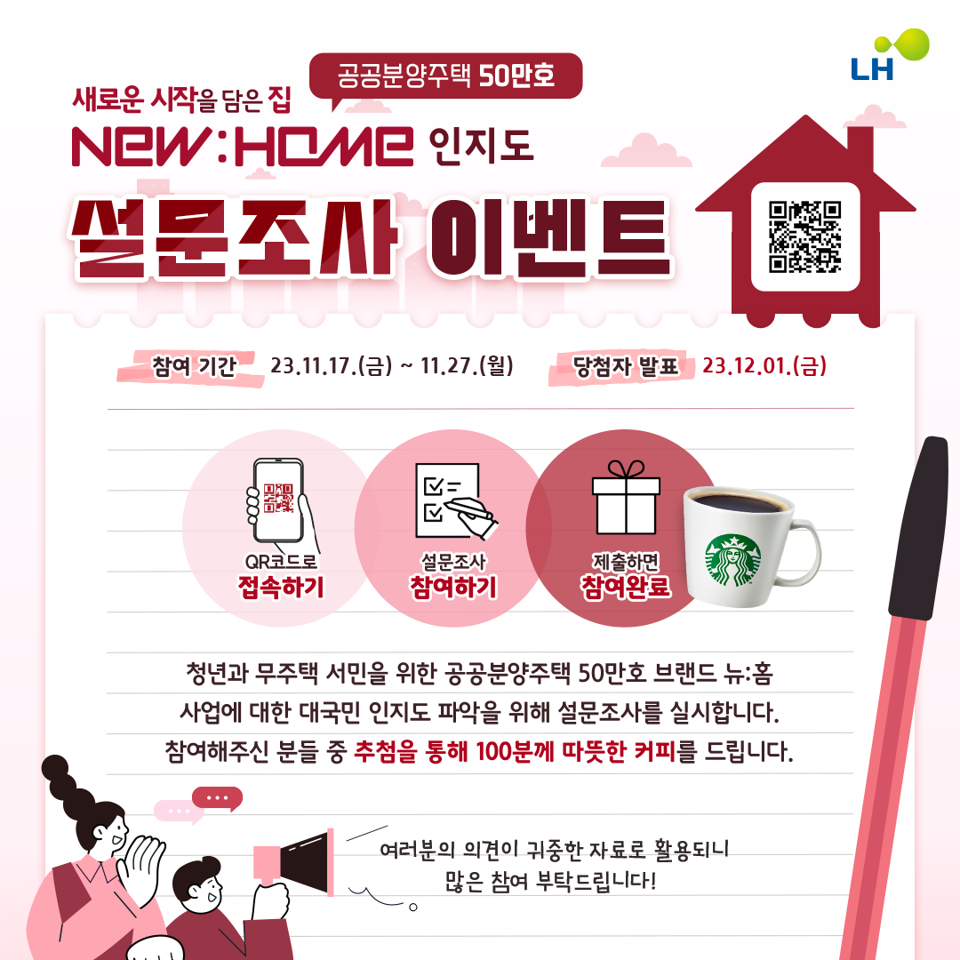 공공분양주택 50만호, 뉴:홈에 대한 국민 인지도 조사를 진행합니다.
