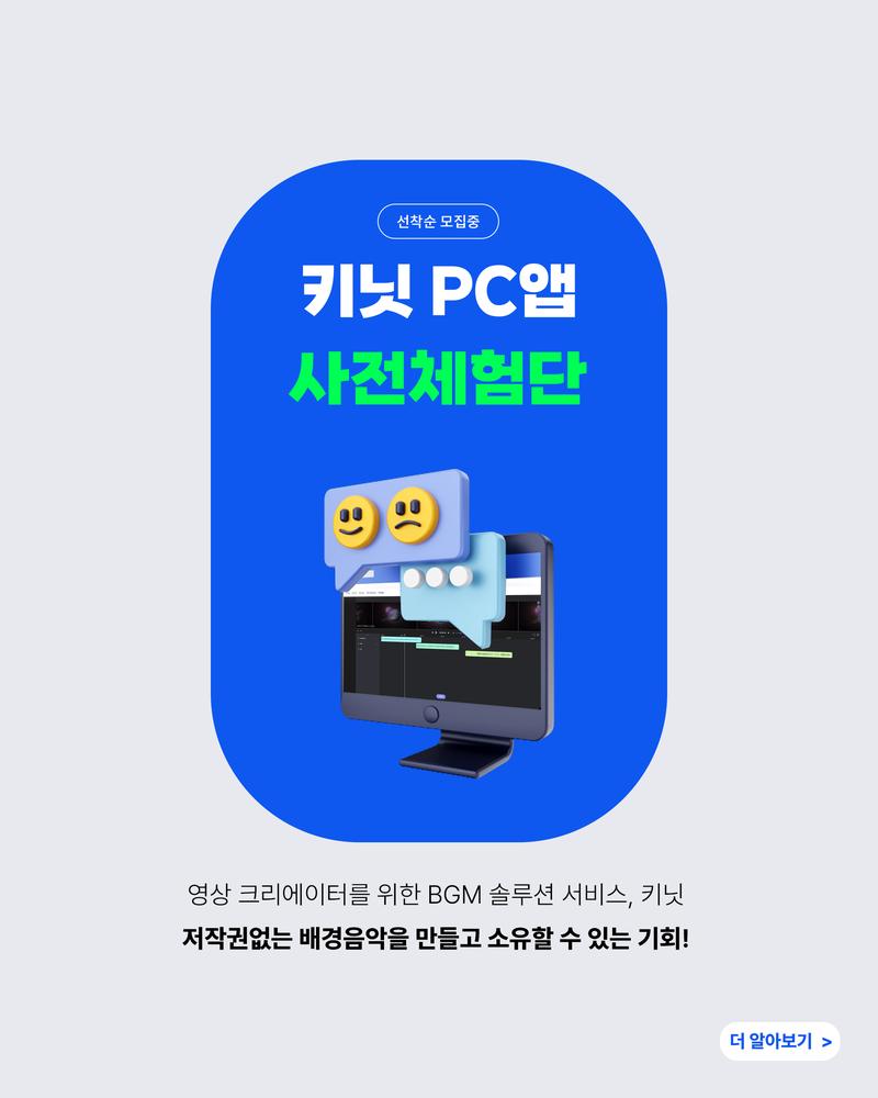 크리에이터를 위한 배경음악 솔루션, AI 배경음악 서비스 키닛입니다.