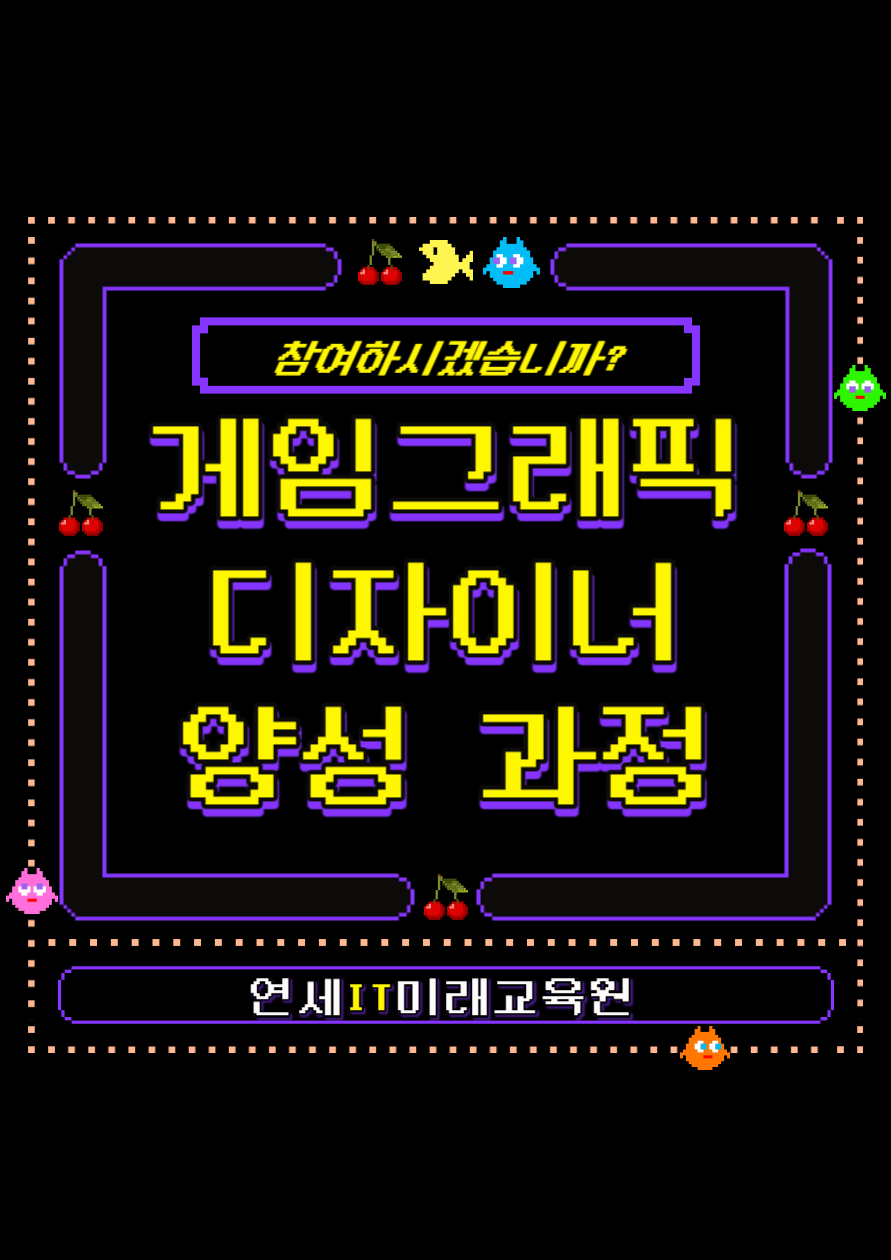 #게임그래픽 #게임그래픽디자인 #게임그래픽디자이너 #2D원화 #3D모델링 #게임UI #게임포트폴리오 #포토샵 #게임애니메이션 #게임배경 #게임이펙트 #유니티 #게임그래픽국비지원 #IT국비지원 #내일배움카드 #국비지원컴퓨터학원 #수원컴퓨터학원 #게임그래픽국비지원 #국비교육 #연세IT미래교육원 #취업준비 #국비지원코딩