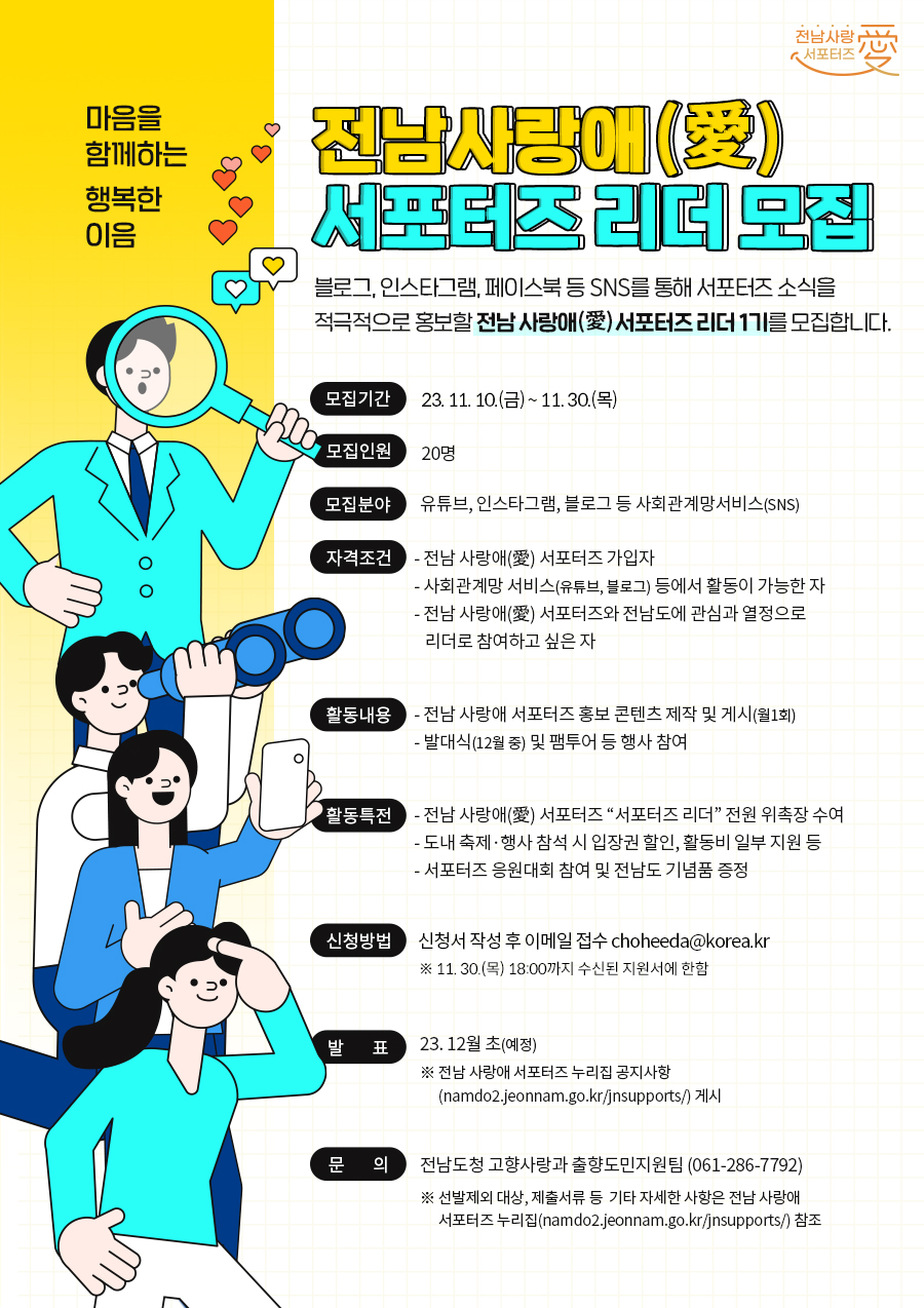 전남 사랑애(愛) 서포터즈 리더 1기 모집 연장 공고
