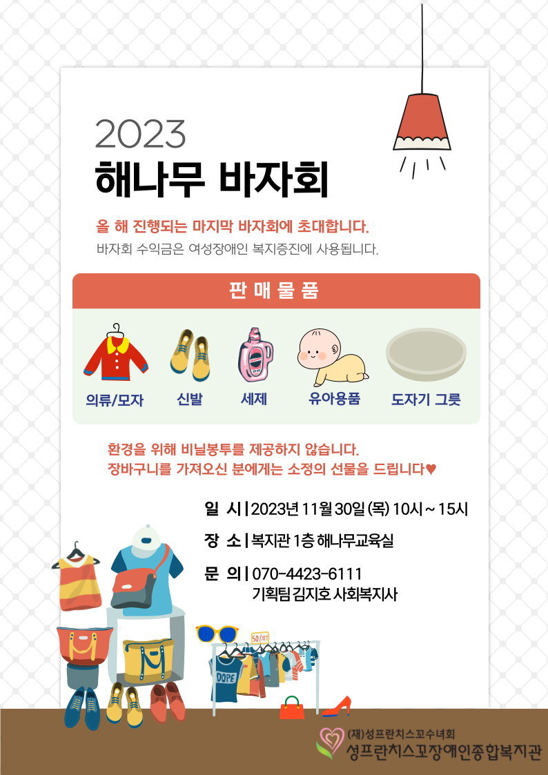 (바자회 진행은 15시까지이나 정리는 16시까지 진행될 수 있습니다!)