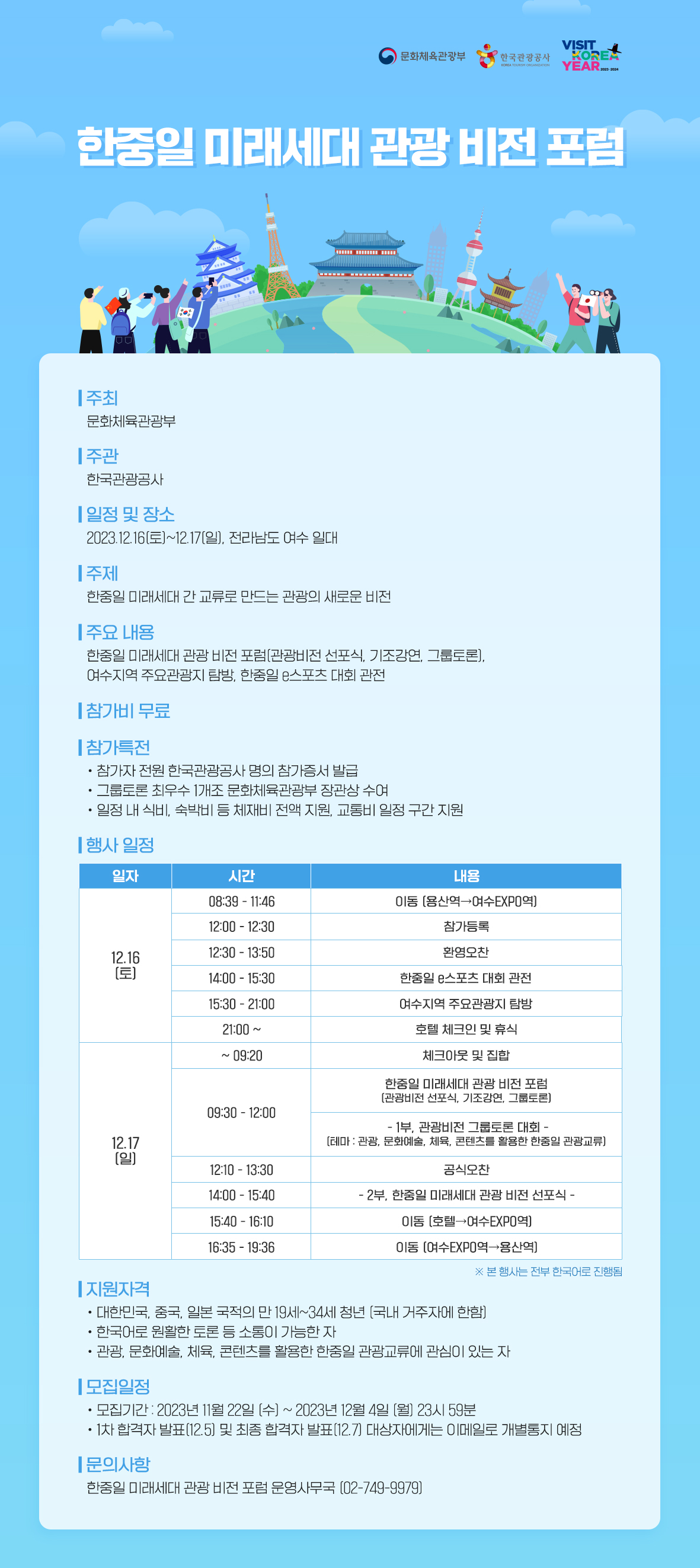 한중일 미래세대 관광 비전 포럼 운영사무국(02-749-9979)