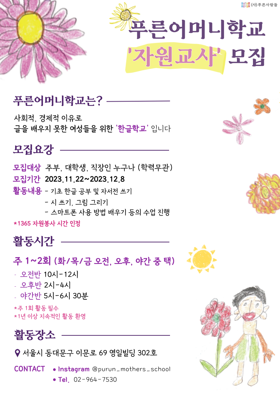 ✨푸른어머니학교 자원활동가 모집✨