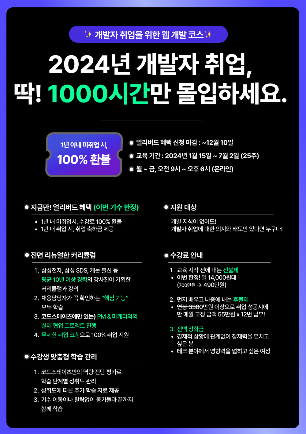 👉 12/10일까지만 드리는 얼리버드 혜택! (이번 기수 한정)