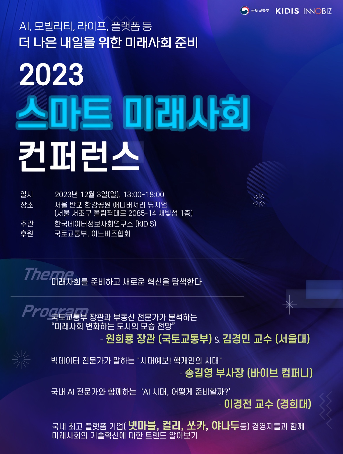 국토교통부 장관과 부동산, 빅데이터, 국내 AI 분야의 선도적 전문가들이 한 자리에 모여 대한민국의 미래를 논의합니다. 기술의 급속한 발전이 우리 사회와 산업에 미칠 영향에 대해 통찰력 있는 인사이트를 들을 수 있는 기회를 놓치지 마세요.