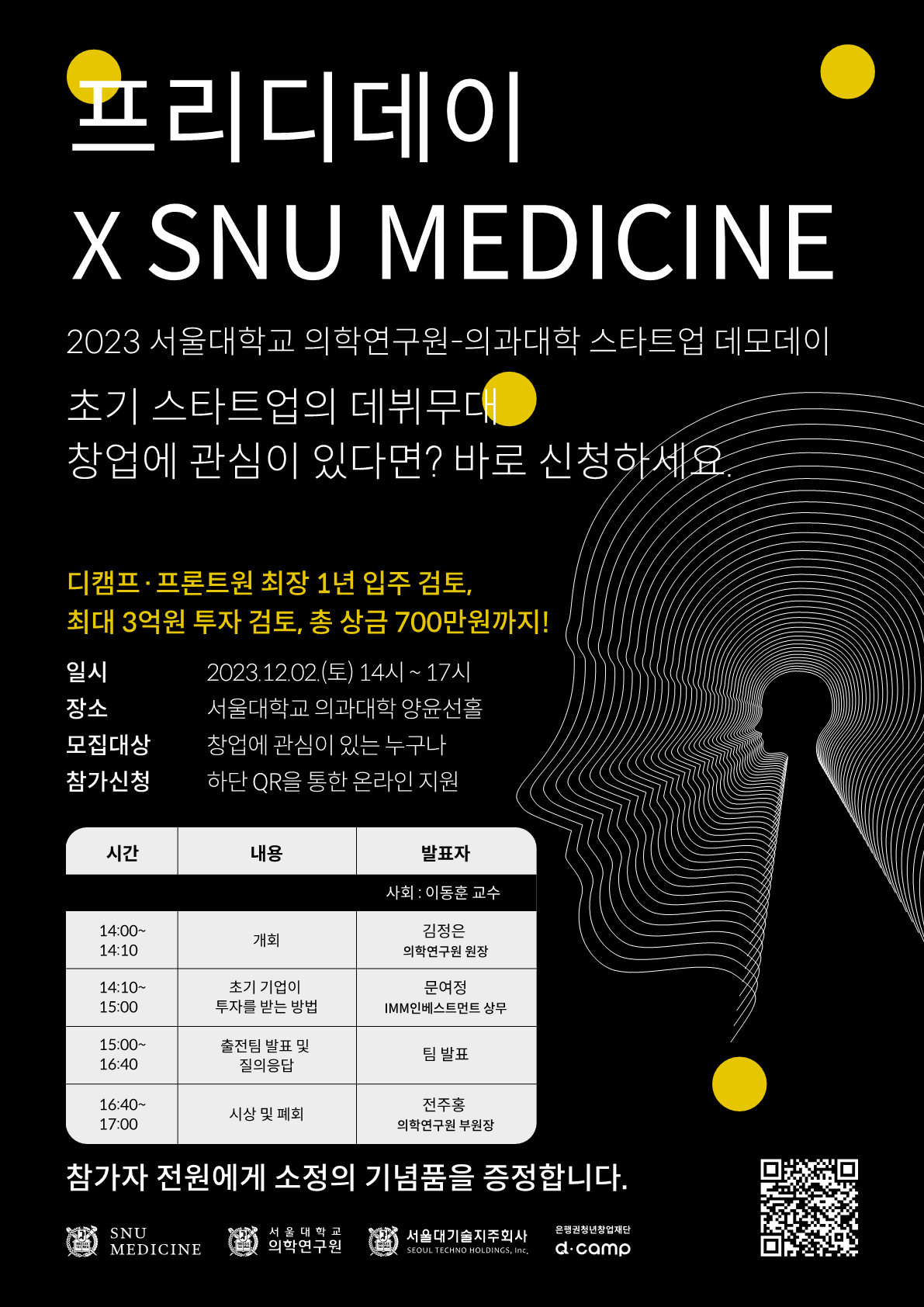 서울대학교 의학연구원/의과대학과 함께할 12월 프리디데이 출전팀을 응원해주세요!