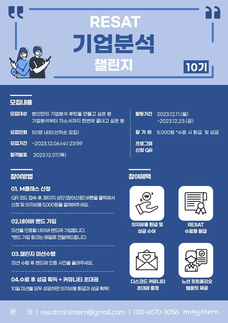 지금 바로 <RESAT 기업분석 챌린지 10기>에 도전하고