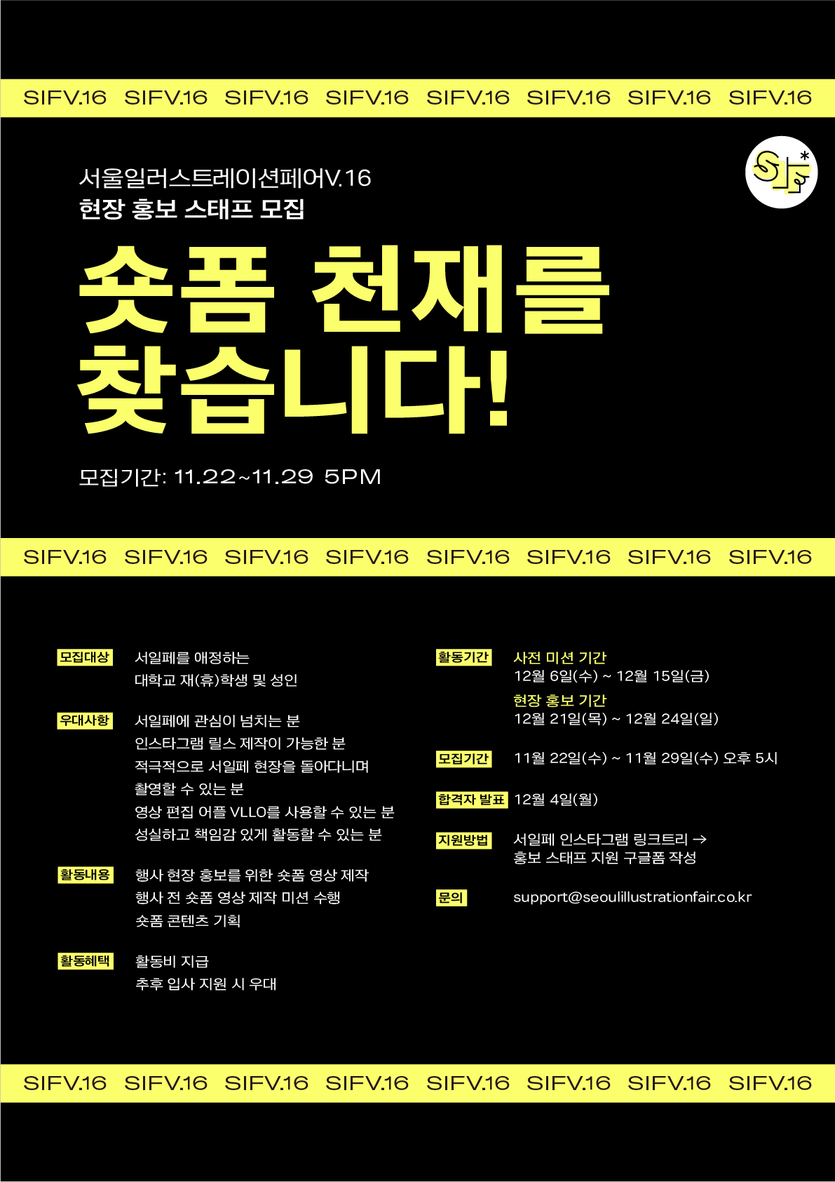 📢서일페V.16 현장 홍보 스태프 모집 🙌