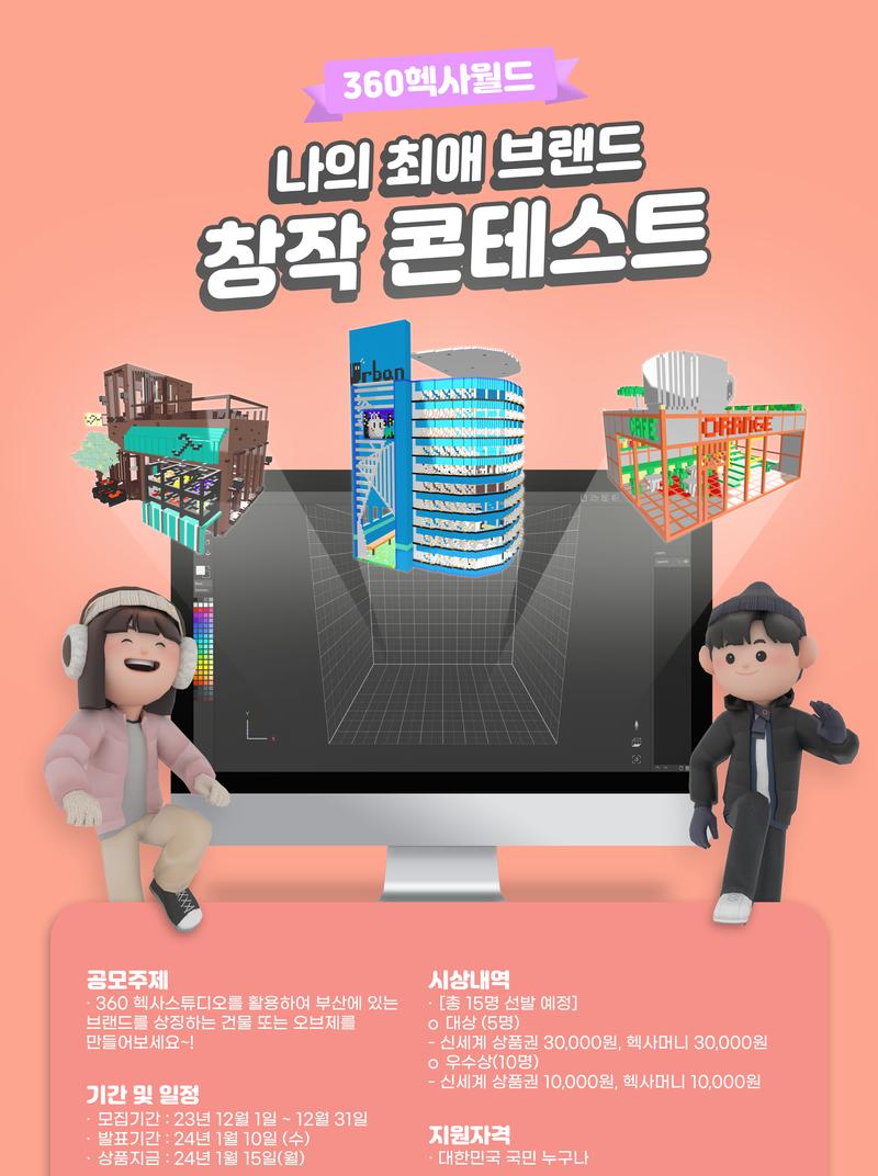 “360 헥사스튜디오를 활용하여 부산에 있는 브랜드를 상징하는 건물 또는 오브제를 만들어보세요~!”