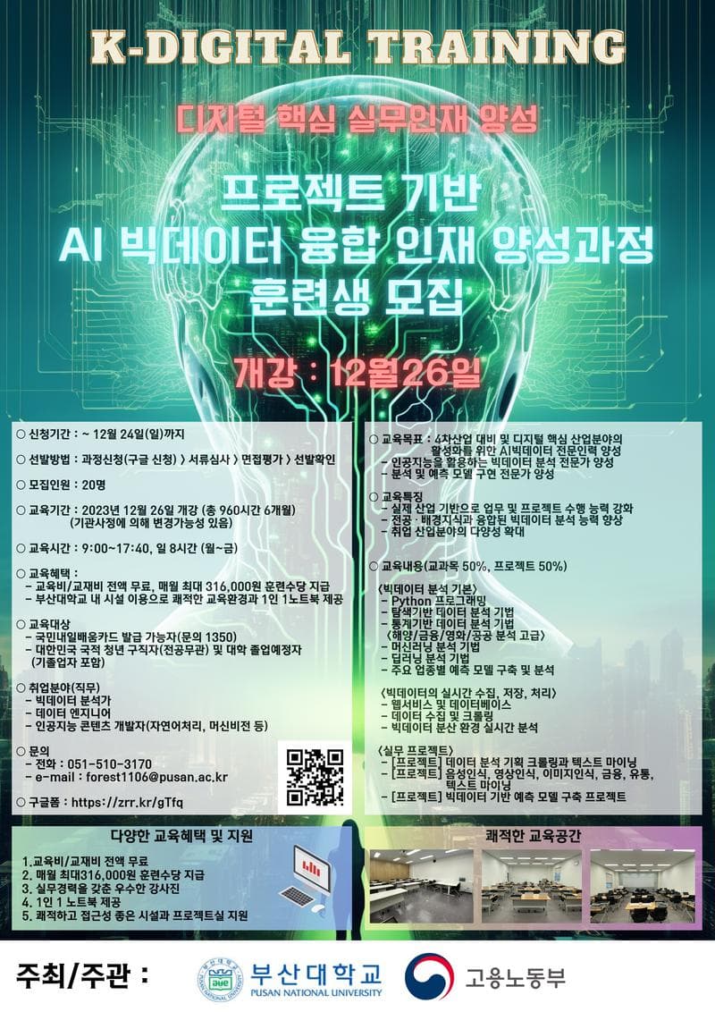 - 부산대학교 내 시설 이용으로 쾌적한 교육환경과1인1노트북 제공