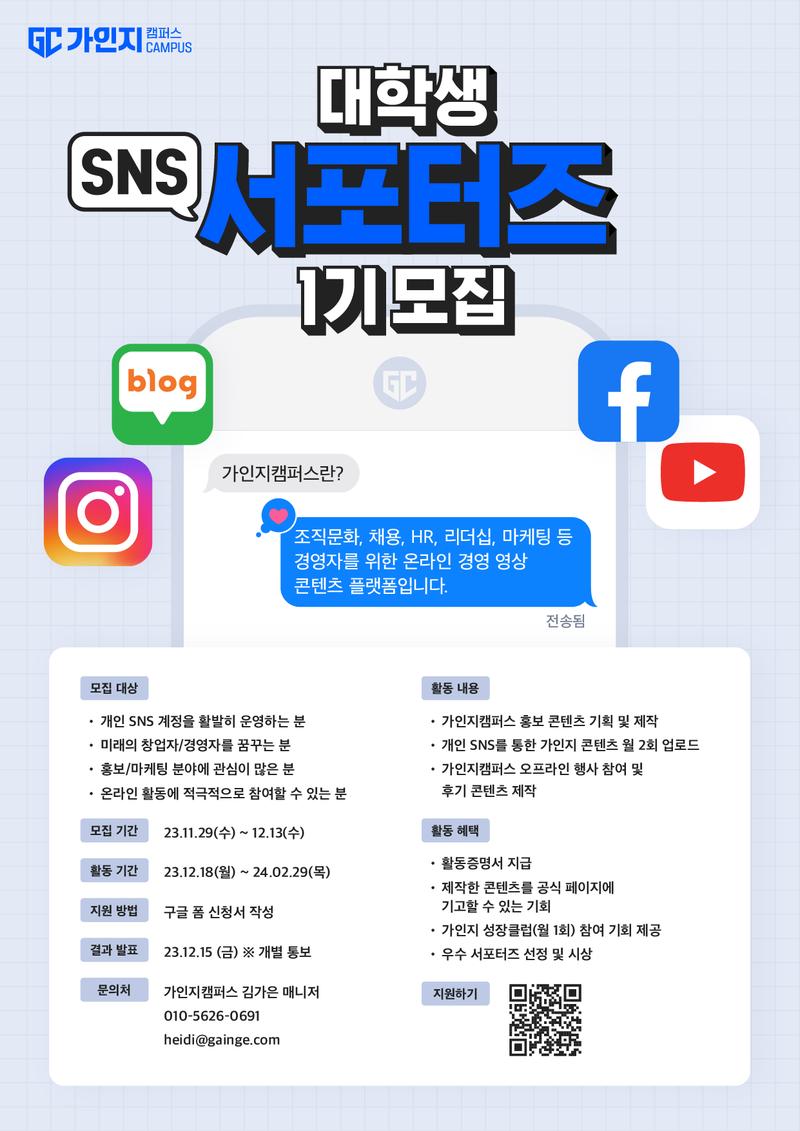 가인지캠퍼스 대학생 SNS 서포터즈 1기 멤버를 모집합니다!📣