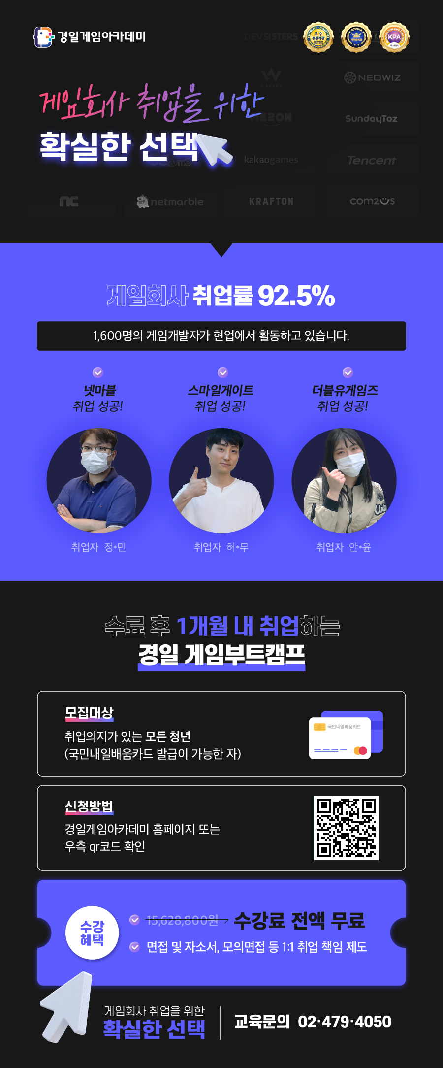 수료 후 1개월 내 게임회사 취업하는 경일게임아카데미