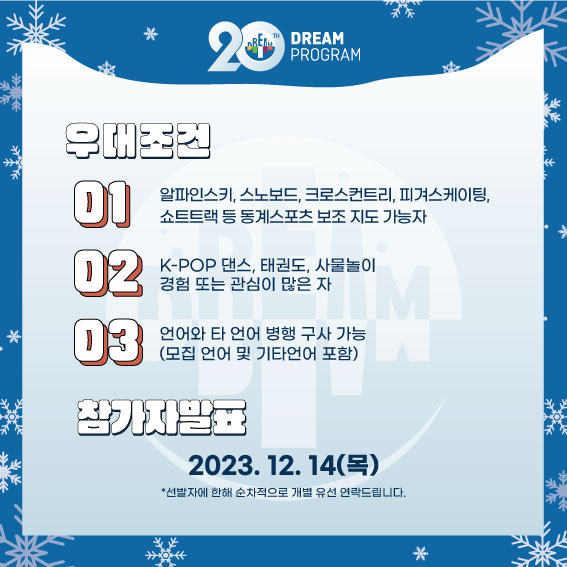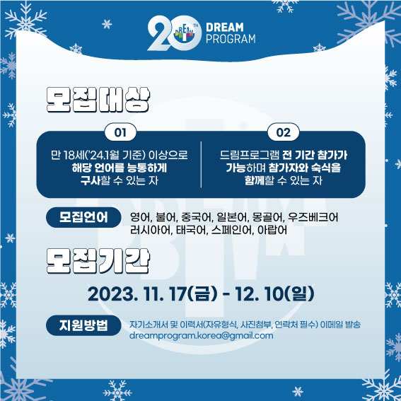 내용으로 dreamprogram.korea@gmail.com 으로 지원서 접수 해 주시기 바랍니다.