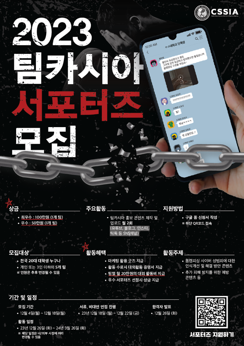 디지털성범죄 대응기업 팀카시아에서 서포터즈를 모집합니다!