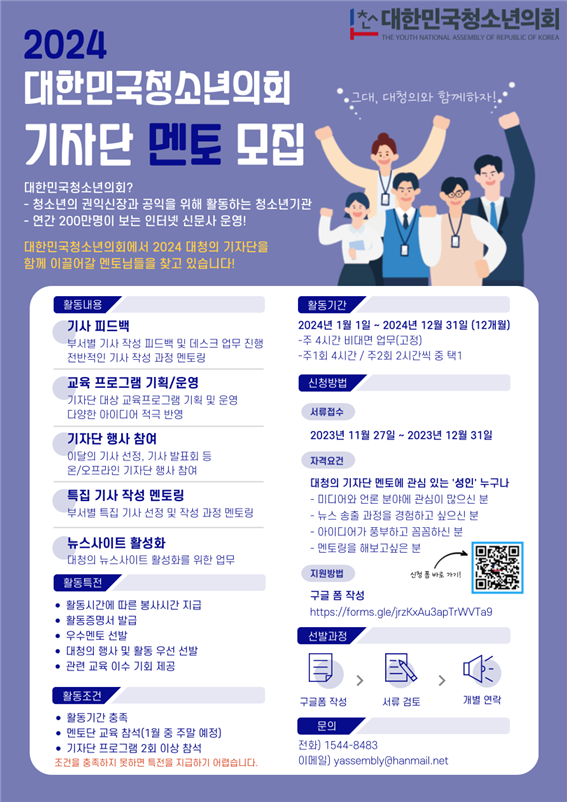 - 대한민국청소년의회 행사 및 활동 우선 선발 기회 제공