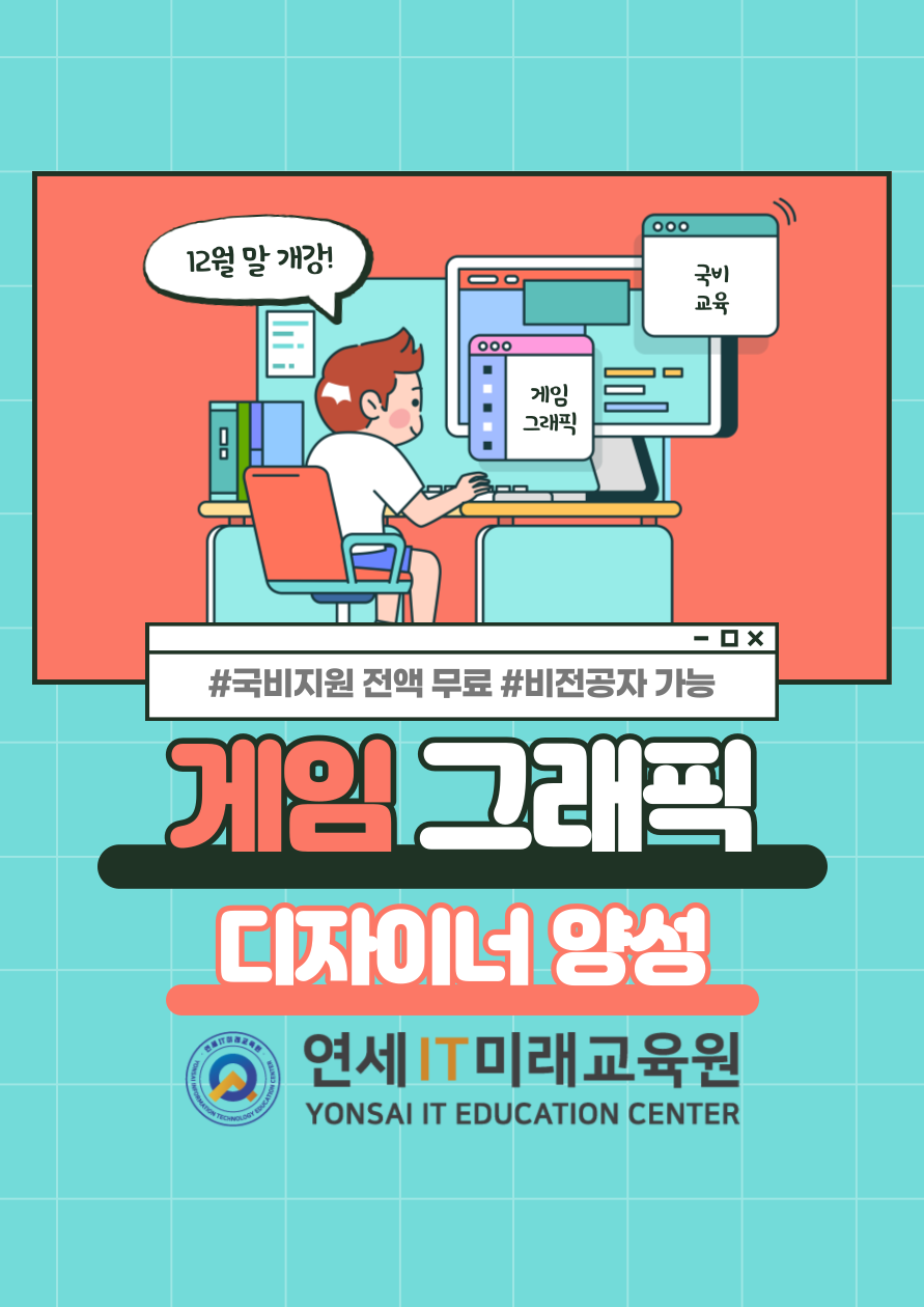 #게임그래픽 #게임그래픽디자인 #게임그래픽디자이너 #2D원화 #3D모델링 #게임UI #게임포트폴리오 #포토샵 #게임애니메이션 #게임배경 #게임이펙트 #3D애니메이션 #게임그래픽국비지원 #IT국비지원 #내일배움카드 #국비지원컴퓨터학원 #수원컴퓨터학원 #게임그래픽국비지원 #국비교육 #연세IT미래교육원 #취업준비 #게임아카데미 #3DSMAX #게임디자인 #게임원화 #게임학원