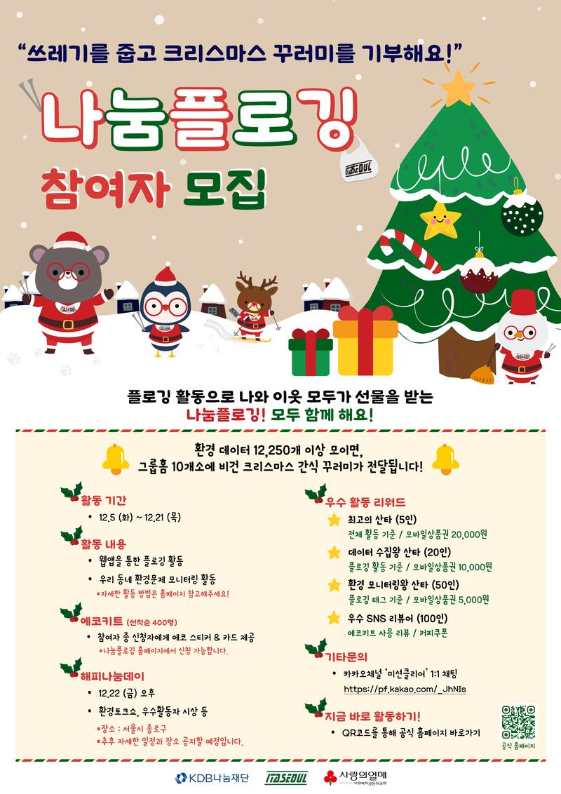 #나눔플로깅 #KDB나눔재단 #사랑의열매 #이타서울 #플로깅 #데이터플로깅 #산타 #크리스마스 #플로깅산타 #줍깅 #환경정화 #봉사활동 #자원봉사 #기부