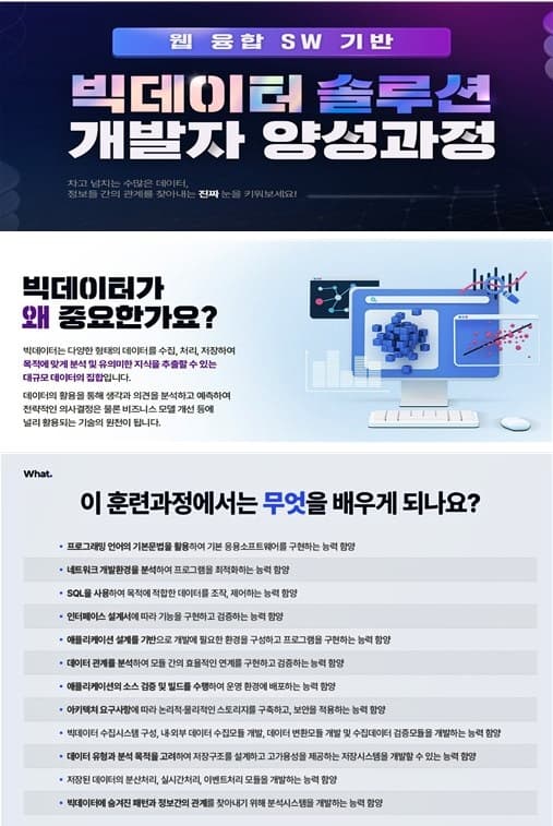 - (디지털컨버전스) 웹 융합 SW 기반 빅데이터 솔루션 개발자 양성과정