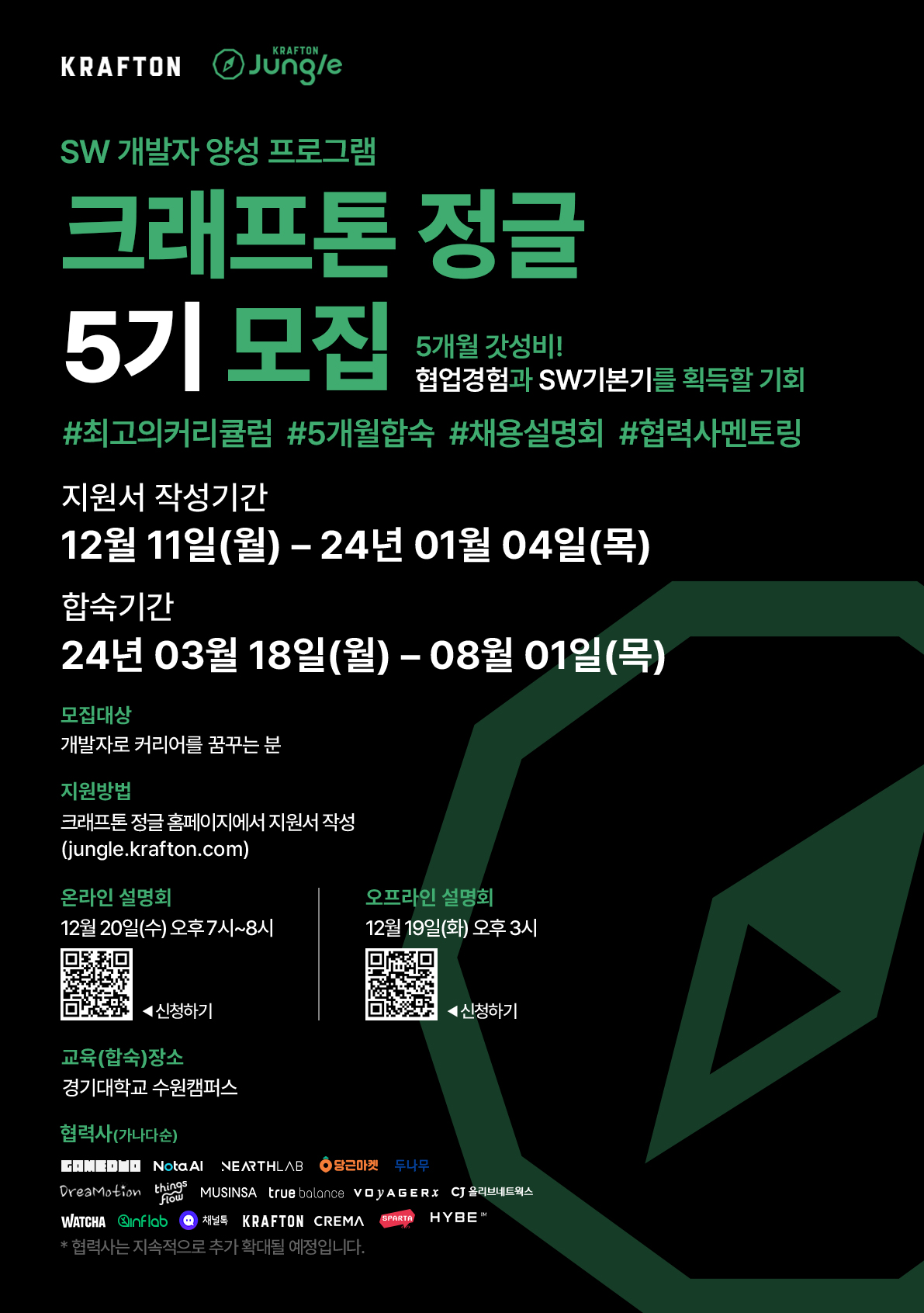 ※ 협력사 : 니어스랩, 당근마켓, 드림모션, 무신사, 보이저엑스, CJ올리브네트웍스, 왓챠, 크래프톤, 팀스파르타, 하이브IM 등