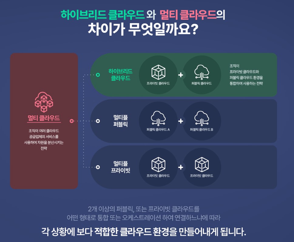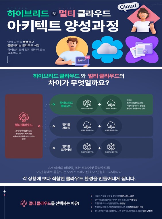 - 하이브리드 및 멀티 클라우드의 개념을 이해하고 자동화 환경을 이용한 효과적인 서비스를 구현