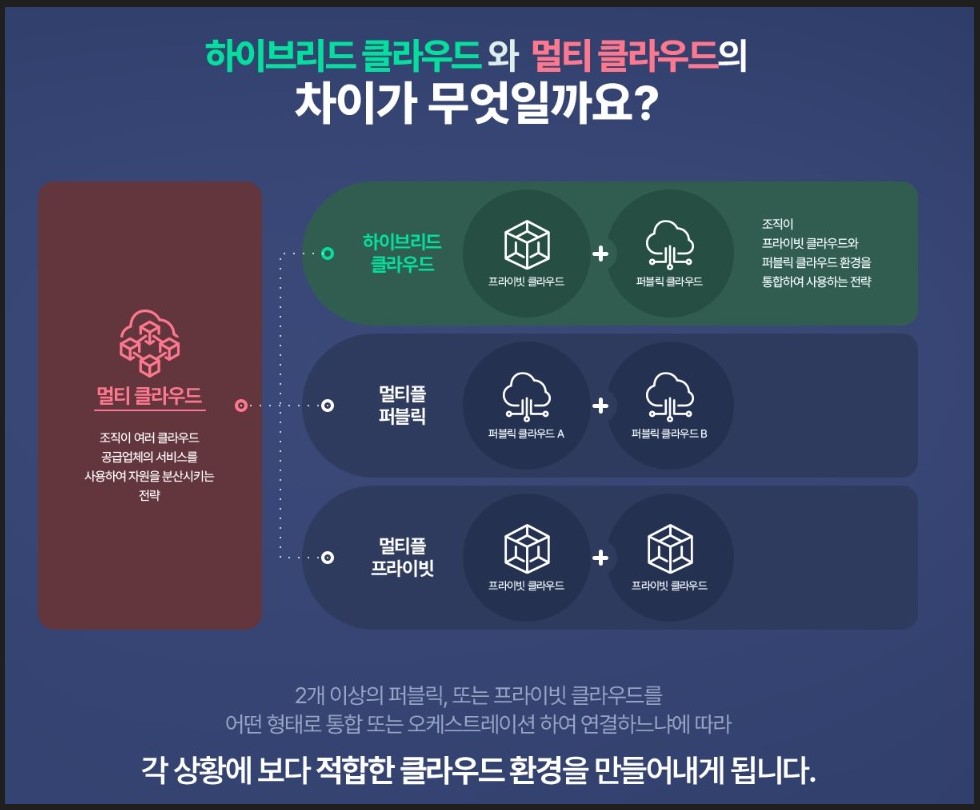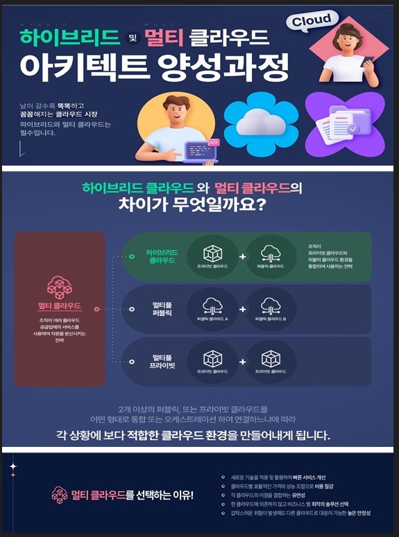- 하이브리드 및 멀티 클라우드의 개념을 이해하고 자동화 환경을 이용한 효과적인 서비스를 구현