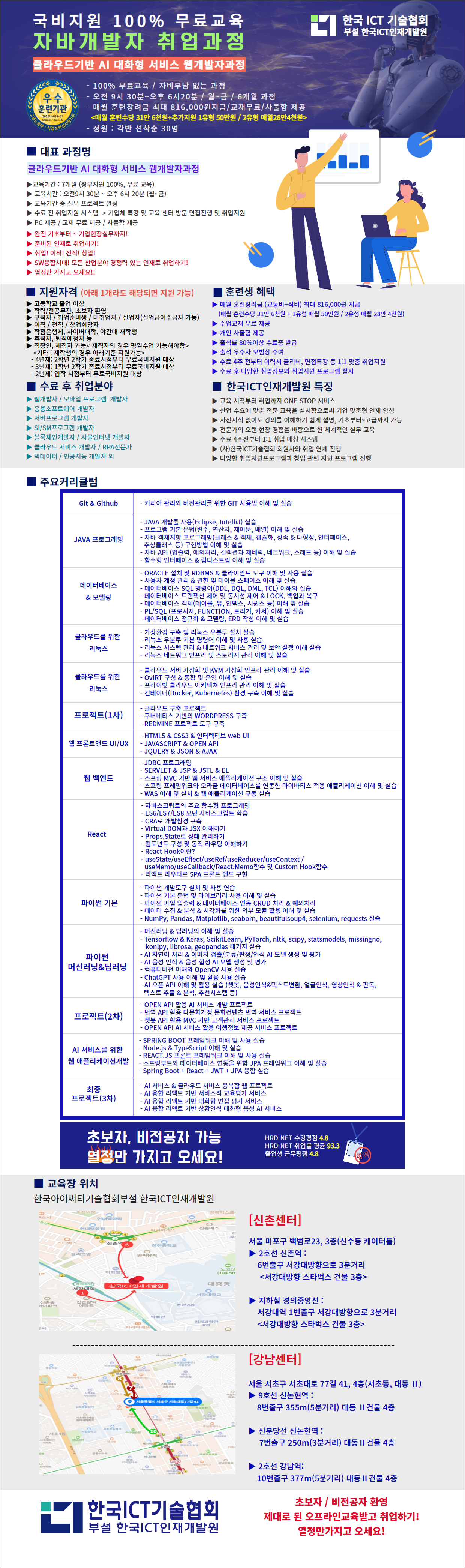 📍교육과정: 클라우드 기반 AI대화형 서비스 웹 개발자 과정(자바&파이썬 개발 과정)