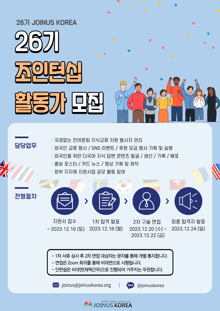 [언어문화 NGO 조인어스코리아] 2023 JOINTERNSHIP 26기 모집