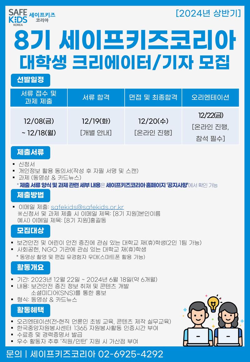 * 제출 서류 양식 및 과제 관련 세부 내용은 세이프키즈코리아 홈페이지 "공지사항"에서 확인 가능