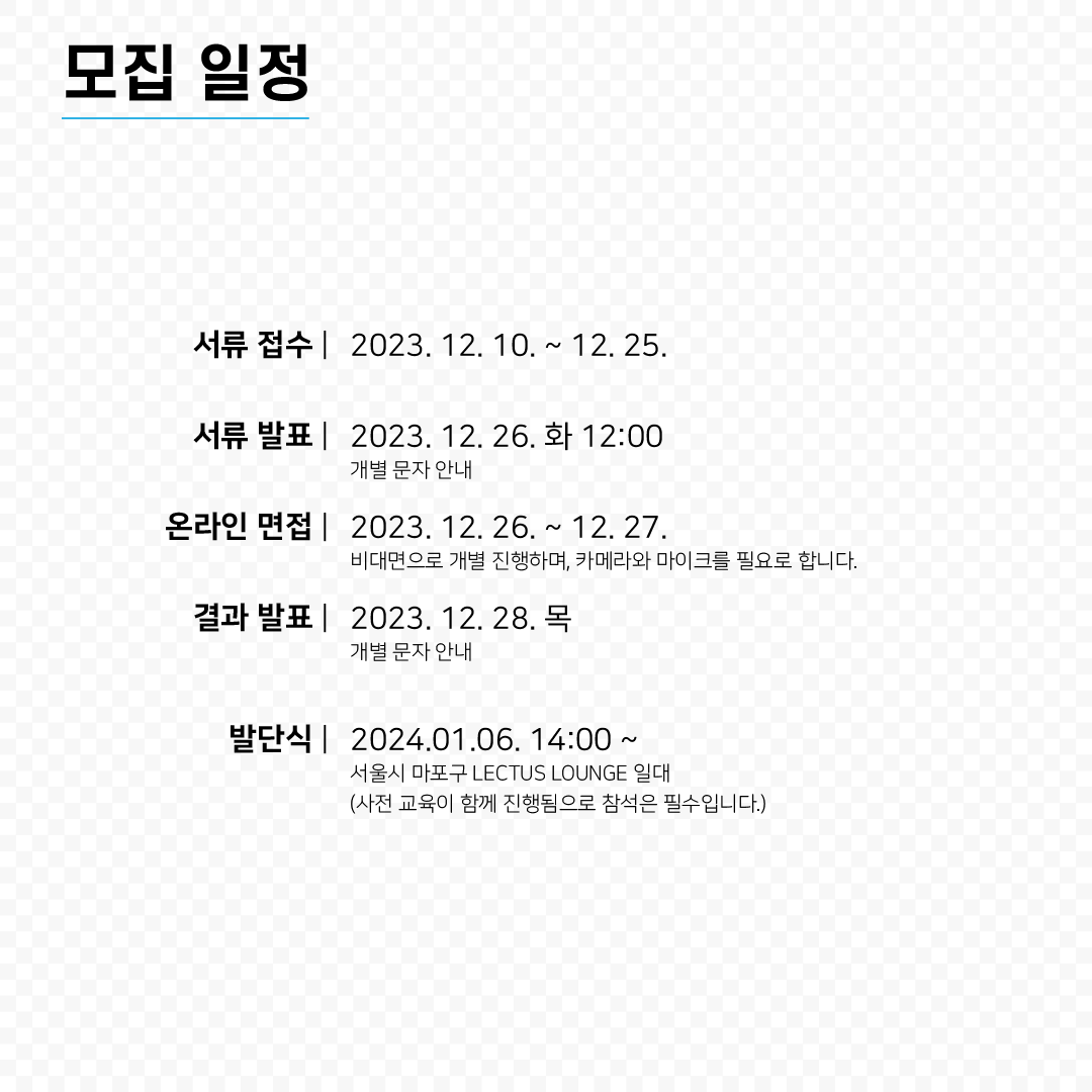 서류 발표 : 2023. 12. 26. 12:00 이전